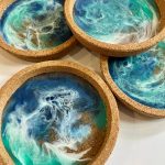 We currently offer Abstract Flow Resin Panels and Earth Tone Resin Trays & Coasters. Our flow panels are crafted with fluid resin techniques, creating captivating patterns that resemble natural landscapes or cosmic energy. Meanwhile, our trays and coasters highlight warm, earthy tones — designed to bring grounding calm to any living space. Each piece is hand-poured using high-quality resin and pigment blends, making every item unique and full of character.